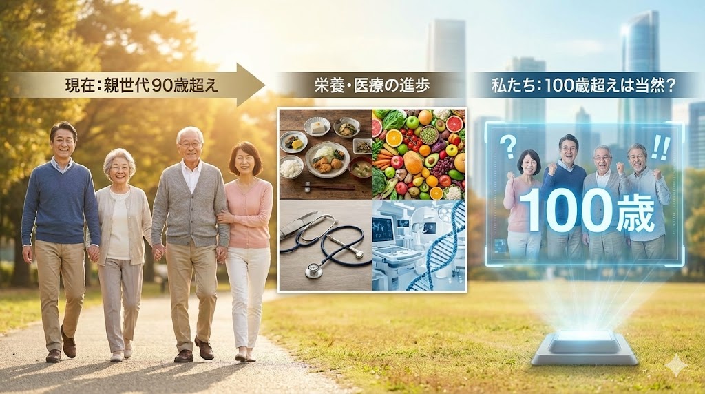 私たちの世代は、祖父母の時代と比較して、栄養状態も格段に良く、医療技術も驚くほど進歩していますから、私たちの両親が祖父母よりも長生きをするのは当然ということです。