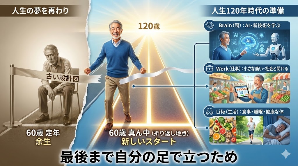 120年で計算すれば、60歳はまだ「真ん中(折り返し地点)」です。