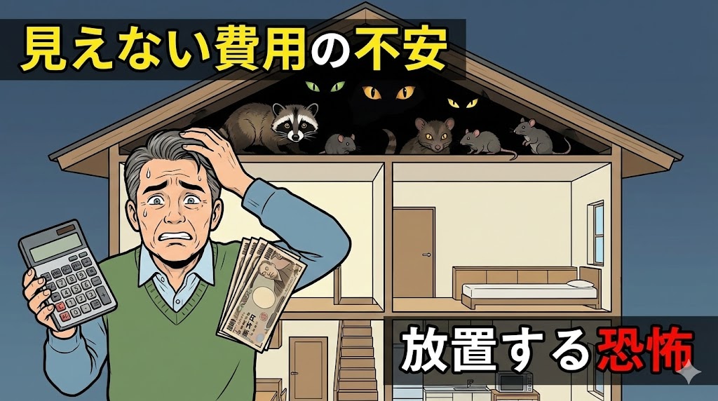 「天井裏から足音がする…業者に頼みたいけど、数十万円も請求されたらどうしよう」